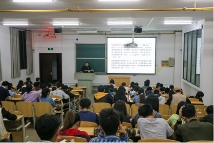 姚兰从考研动机、考研形式、如何选择学校专业、如何进行备考以及历届考研情况五方面向在座学生进行阐述。在考研动机这一方面,她表示报考研究生要树立一个正确的考研观,找准自身的定位,保持初心。对于如何选择学校和专业,她指出选择比努力更重要,专业比学校更重要。同时,姚兰告诫学生要做好规划,管理好时间,一心一意,持之以恒,无论遇到什么情况,一定不要轻易放弃。