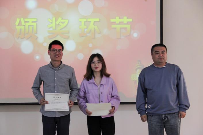 经过两个多小时的角逐,最终,来自YX2004班的宋歌同学获得了此次比赛的一等奖,彭飞飞、刘亚瑞获得了二等奖,梁思琪、李燕玲、王茹获得了三等奖。最后,由评委老师为各位获奖选手现场颁发了荣誉证书并合影留念,演讲比赛圆满结束。