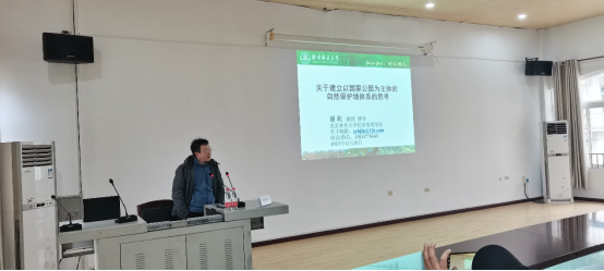 谢屹教授以“关于建立以国家公园为主体的自然保护地体系的思考”为主题进行了专题报告。谢教授从国家林草局北上象群处置的亲身工作体验和思考出发,围绕从自然保护区到自然保护地,再到国家公园过程中发生的系统性变革和探索性改革,以及自然保护地体系建设等方面进行了介绍。