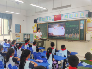 肖凯童带同学们认识到昆虫世界是一个奇妙有趣的世界,使用轻松的方式认识形态各异、种类繁多的昆虫;艾鑫以丰富的图片向同学们展示了森林的分类与种类;朱天润和刘昊以具有趣味性的小视频及互动的方式科普了关于道地药材-黄精的形态特征及药用价值;范成成主要讲述了水杉的形态结构、生长习性与需求、人工繁殖技术,以及水杉在生态环境保护中的应用价值等;袁滈及陶文以开展实验的方式向同学们展示了水土保持的重要性;钟明月以精彩且丰富的照片为同学们展示了生物多样性的种类及重要性;兰德淼讲述了野生动植物资源的定义、野生动植物资源保护的重要性,以及作为中小学生应该如何保护野生动植物资源;邹庆通过给同学们分发泥炭藓实物,让同学们更好地了解泥炭藓地结构特征与重要性;黄厚云以生动有趣的问题吸引同学们了解水中燕窝-莼菜;黎可欣通过古诗词及精美的图片向学生们展示牡丹的历史价值与丰富的花色花型。在宣讲的课堂上,讲师们还通过设置提问、有奖竞答、实验展示、问卷填写等多种方式与学生进行了热烈的互动,学生积极性高,课堂氛围浓烈,听讲的同学们学到了许多有趣的新知识,宣讲效果良好。