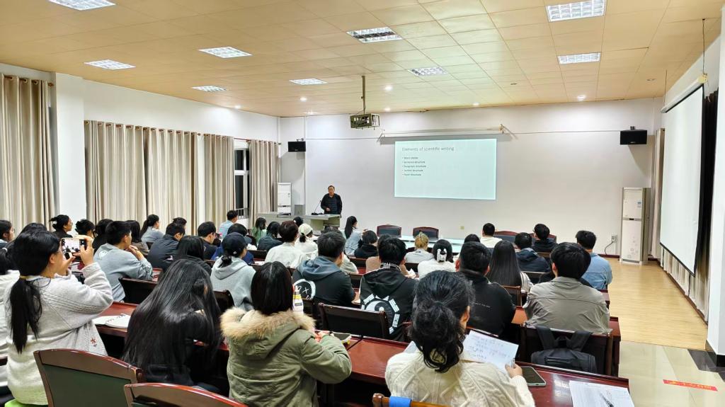 2025年10月31日,华中农业大学园艺林学学院晏召贵教授应邀为我院师生开展了题为“SCI论文写作:How to write sentences clearly”的学术讲座。学院党总支书记姚兰教授、学院部分专业教师、研究生和本科生等60余人参加了讲座。