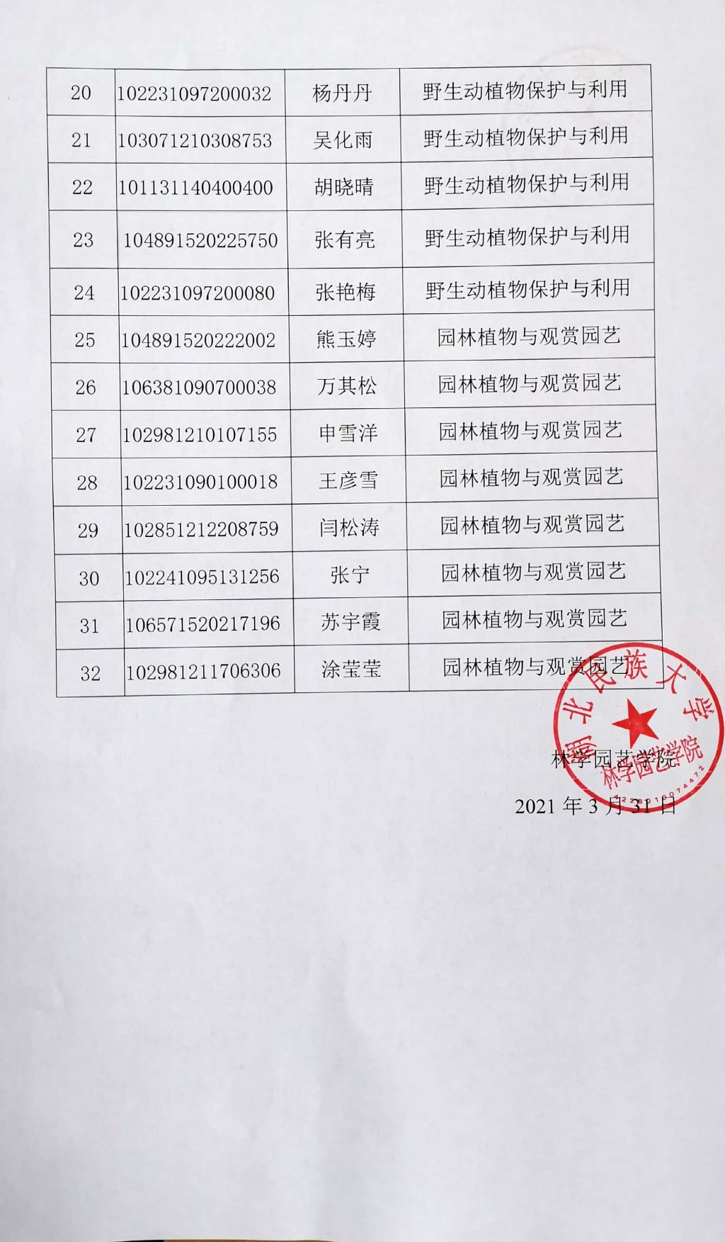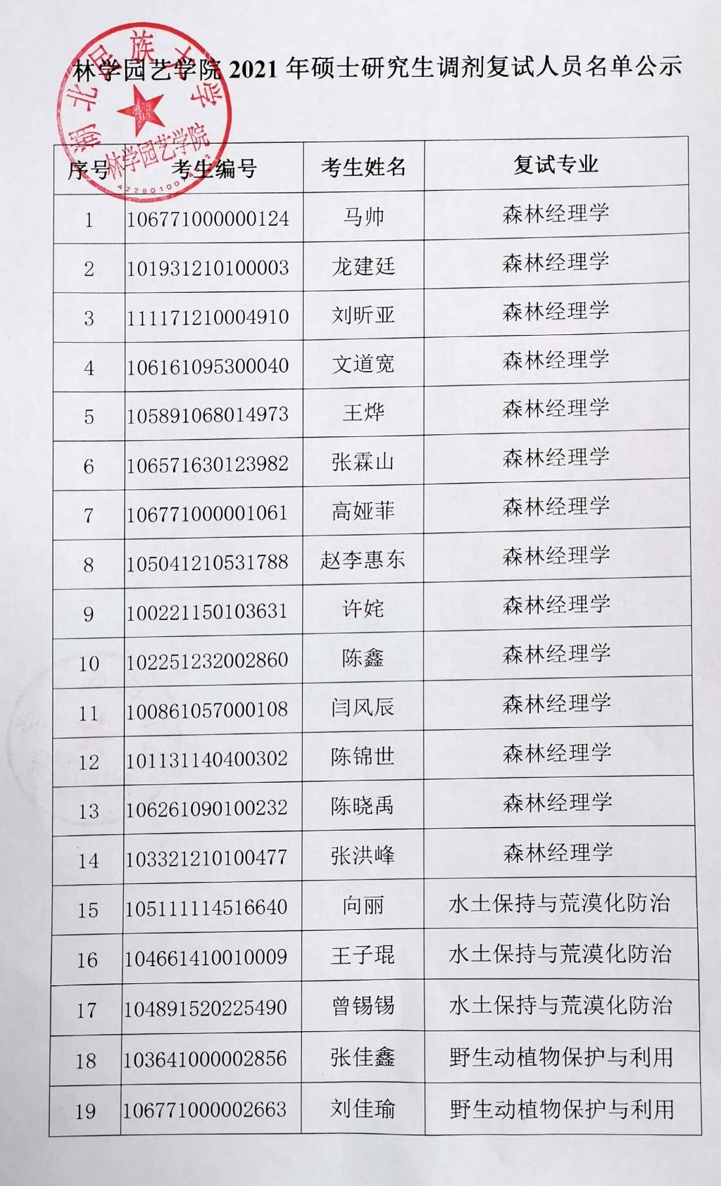 林学园艺学院2021年硕士研究生调剂复试人员名单公示