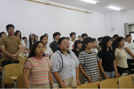 全体起立升国旗、唱国歌