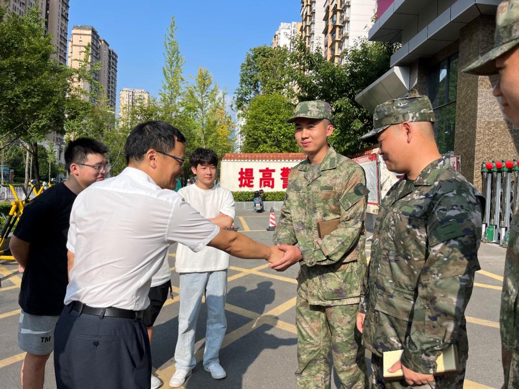 赵魁轩书记代表学院向光荣应征入伍的三位新兵送上慰问品,并表示热烈祝贺。他说,从今天开始,你们将辞别亲人,以连队为家、与钢枪为伴,在部队学本领、长才干、作贡献。大家要牢记职责使命,深刻领悟习近平总书记“强国必须强军,军强才能国安”的重要指示精神,把爱国之心和满腔热情转化为兴武强军的实际行动,全身心投入国防和军队现代化建设,当听党话、跟党走的好兵。要练就过硬本领,在军营这座大熔炉刻苦训练、淬炼成钢,努力成为“有灵魂、有本事、有血性、有品德”的新一代革命军人,当能打仗、打胜仗的精兵,早日成为一名优秀军人,捷报频传,以优异成绩为亲人争光、为母校添彩。同时也热切期待学校越来越多有志青年主动响应祖国号召,参军入伍、报效祖国,为国防和军队现代化建设贡献力量。