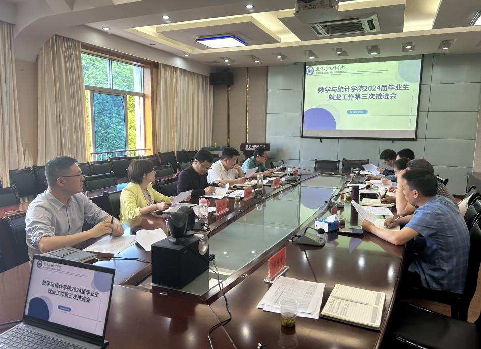 2024年5月8日下午,数学与统计学院在学院四楼会议室召开第三次就业工作推进会。学院领导班子、各系主任、学生科辅导员、2020级班主任参加了会议,会议由党总支书记赵魁轩主持。