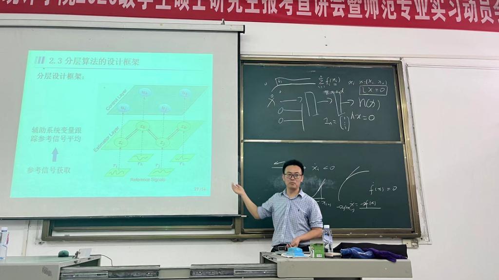 魏波博士以“多智能体系统分布式动态平均一致”为主题,介绍了多智能体的背景,重点提到了一种多智能体系统和控制的基本工具——动态平均一致算法,该算法在分布式编队控制、分布式状态估计、分布式资源分配等领域都有着广泛的应用。同时他还介绍了动态平均一致的一个新的多层级控制算法,并且详细地讲解了这种新的多层级控制算法的实现过程以及通过实验展示出了该算法在分布式假设检验、分布式优化和分布式任意阶样本统计矩估计等方面都有潜在的应用。