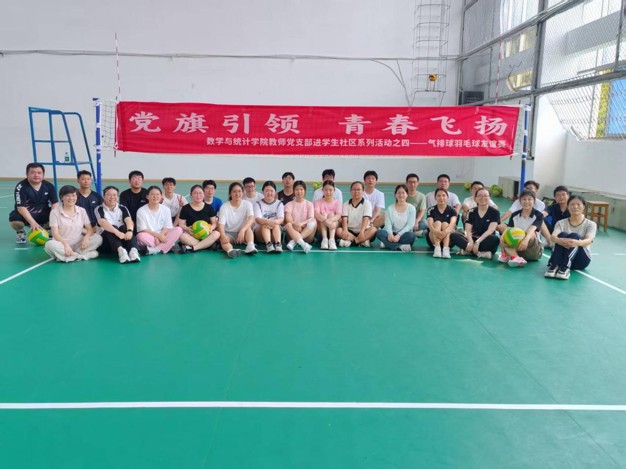 为推动党建工作与学科建设、人才培养深度融合,促进师生交流,强化协同育人实效,6月19日下午,开云电竞官方网站入口数学与统计学院教师党支部携手院工会、本科生和研究生党支部,以“党旗引领,青春飞扬”为主题,在我校小球馆与大球馆分别展开师生羽毛球和气排球友谊赛。此次活动为我院“党员教师进社区”系列实践活动之四,活动以别开生面的形式,为师生搭建起互动交流的平台,书写了党建引领下体教融合的生动篇章。