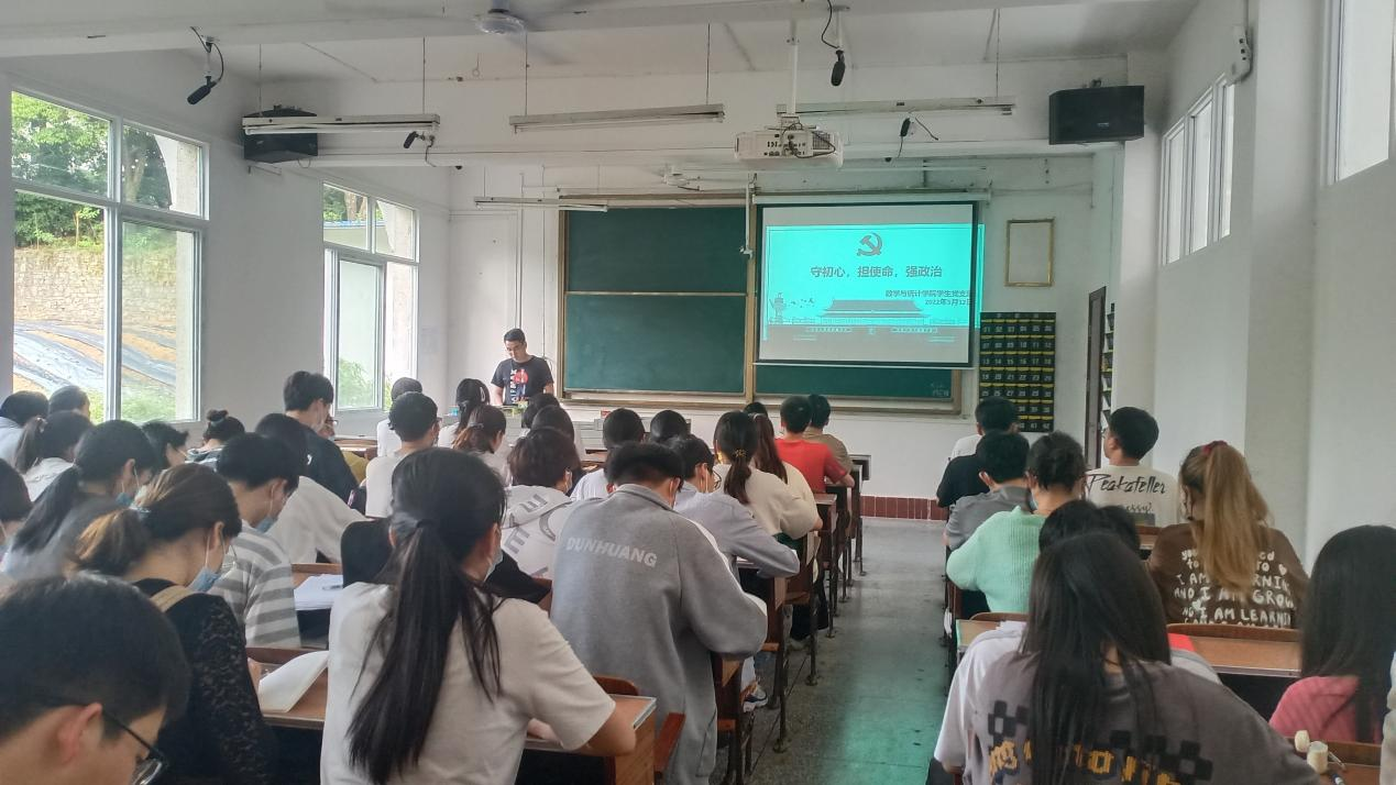 2022年5月12日,我院学生党支部在3303教室召开党员大会,开展以“守初心 担使命 强政治”为主题的支部主题党日活动。会议由支部田锋同志主持。