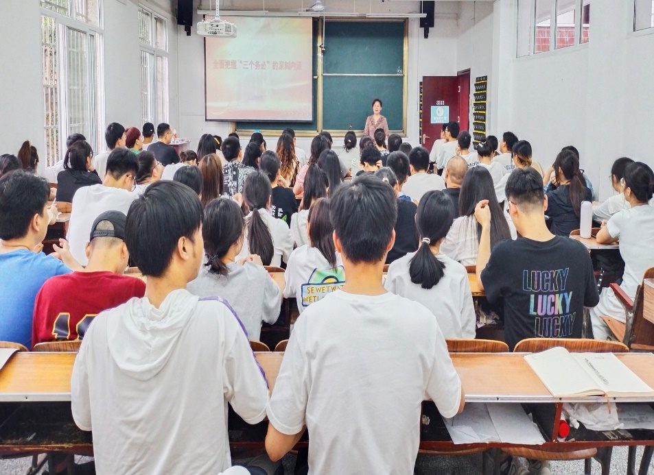 会上,张瑛老师将本次授课内容分为四个部分,即“三个务必”和它们之间的联系。张瑛老师带领同学们深入学习中国共产党的初心和使命,并鼓励同学们勇于担当责任,积极主动作为,知重负重,勇于攻坚克难,学习科学的理念和思维方式。