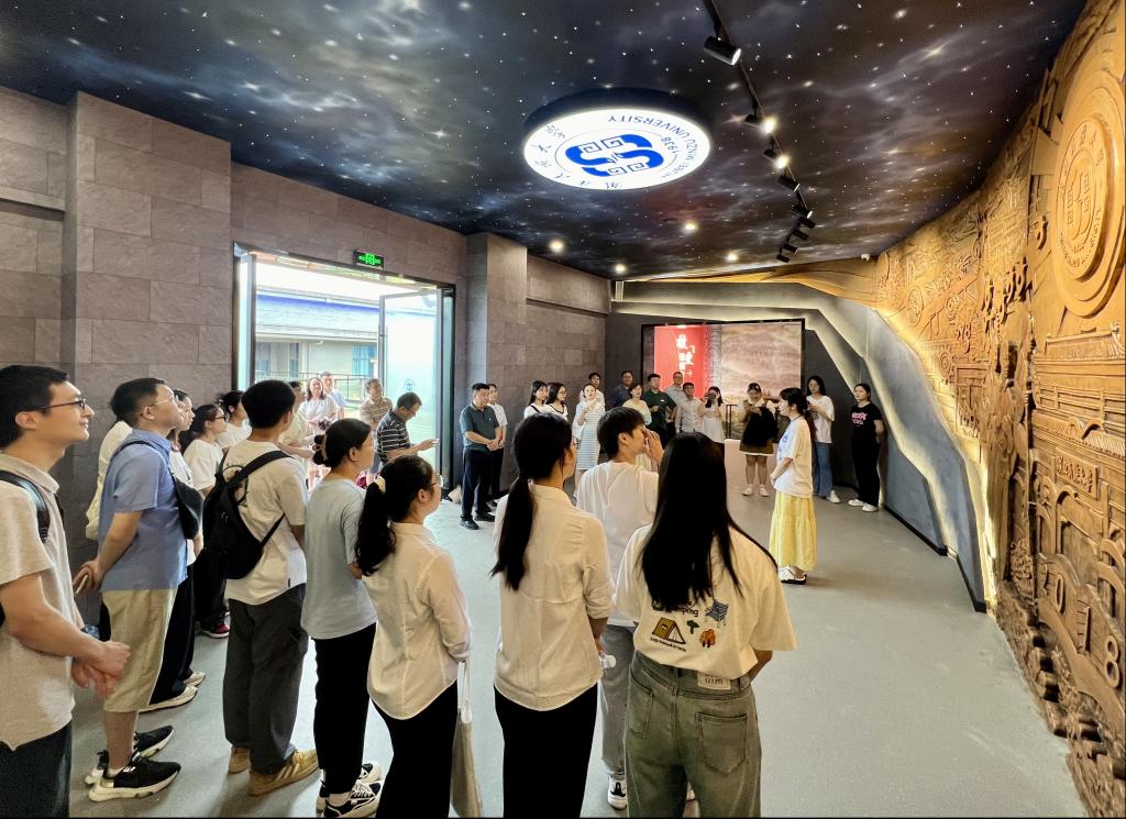 随后,学院学生第一党支部、学生第二党支部、教师党支部全体党员一同前往学校展览中心开展红色教育,在校史陈列厅、办学成果展示厅和发展规划厅,通过对学校发展历程、人才培养、科学研究与社会服务、文化传承、专题展示及发展规划等情况的详细了解,增进了奋进新征程的凝聚力。