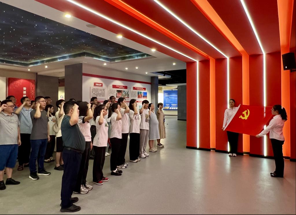 参观完毕后,学生第一党支部组织新发展党员入党宣誓和三个支部全体老党员重温入党誓词,新发展党员向丽静代表发言。