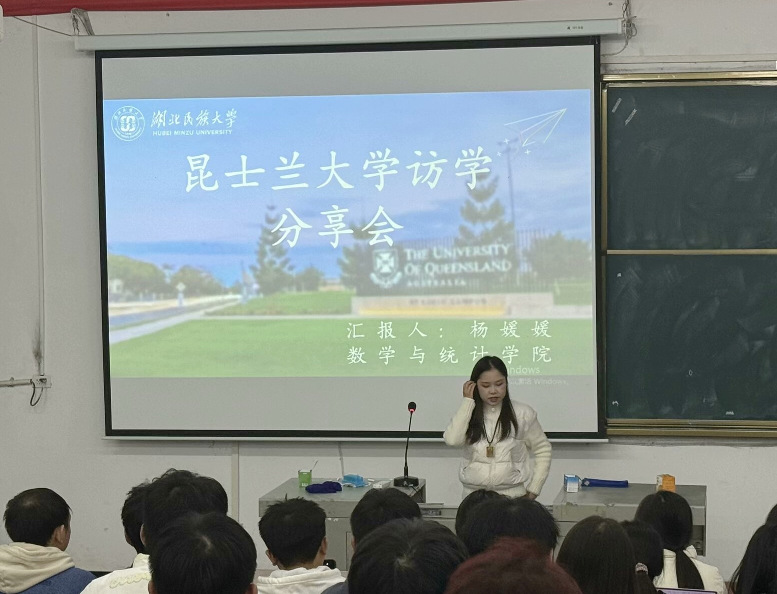 2024年11月27日晚,数学与统计学院研究生访学澳洲回国经验分享交流会在3308教室召开。本次会议由第五届研究生会办公室副主任班苗苗主持,向会立副院长、王清龙老师以及周雄老师莅临指导,研一、研二全体学生参加。