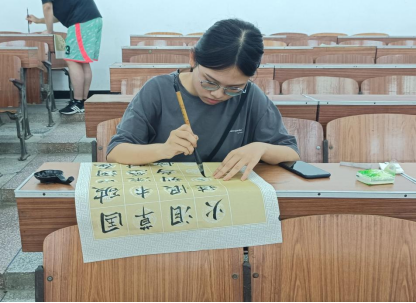 本网讯(记者 冉淼/文 苏晓璇 杨灿/摄)9月11日下午,我院在3307教室举办“丹青峥嵘,笔下繁花”迎新书画赛,我院大一新生积极参加。