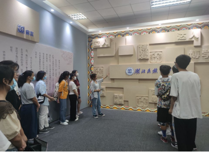 在校史馆讲解员的引导下,同学们由外厅进入,首先映入眼帘的是我校校徽及校名。讲解员以单八勾、凤凰、书、圆、色彩这5个组成部分讲解校徽。随后,讲解员分别以前言、历史沿革、人才培养、科学研究、社会服务这5个模块为同学们讲解我校校史。