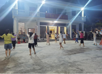 7月14日晚上,为了庆祝建党一百周年,帮助村民树立坚定的信仰信念和精神凝聚力,团队成员利用村委会的广场,与村民一起跳红歌广场舞《歌唱祖国》,借助歌舞的力量来强化村民的爱国爱党意识。