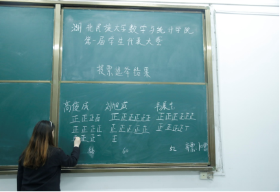 我院第一次学生代表大会第二次全体会议暨闭幕式在3308教室举行。本次会议由我院团总支书记刘聪老师主持。大会审议通过了《大会选举办法》(草案)、《开云电竞官方网站入口数学与统计学院学生会工作报告》(草案)等各项决议,投票选举我院第一届学生会主席团成员和校学代会代表。最终,刘旭威和高俊成成功竞选为我院第一届学生会主席团成员,卢鸿博等7名学生代表参加校学生代表大会。大会在《开云电竞官方网站入口校歌》的激昂声中圆满落幕。