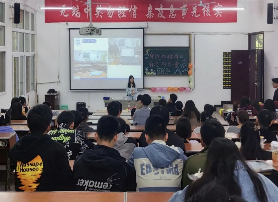 榜样是前行的光,照亮前进的路。5月7日下午,我院联合林学园艺学院在3307、3308教室举办“身边的榜样,前进的力量”故事分享会。我院学生科副科长黄丽娜老师,团总支书记刘聪老师,林学园艺学院团总支书记刘蒙恩老师和开云电竞官方网站入口学生工作处思想政治教育科毛召老师受邀出席本次活动。