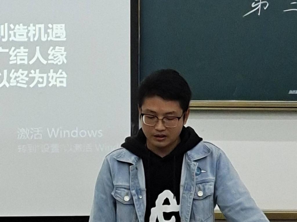 廖祥宇分别从“为什么要在这里”、“你的三种身份”、“应该具备的精神”、“要把握的关键”、“该承担的责任”、“舞台很精彩 背后很艰辛”这六个方面去介绍如何成为一名优秀的学生干部。