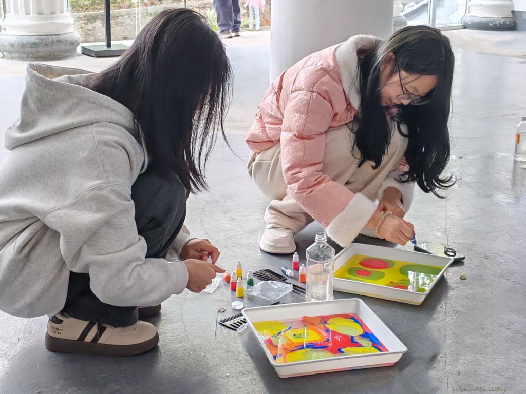 (学生制作水拓丝巾)