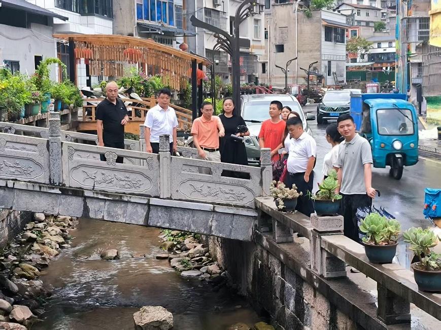 图为调研组实地查看猫儿堡社区黄河沟河流治理效果