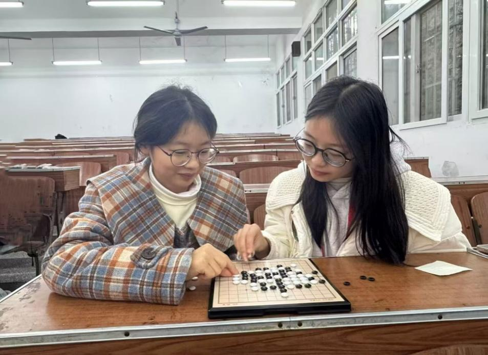 第二阶段为五子棋实战对弈环节。成功晋级的选手转战3308教室,运用所获“棋子”展开策略对决。比赛中,选手们精于计算、步步为营,既要合理配置有限棋子,又需预判对手布局,充分体现数学建模中运筹帷幄、优化决策的思维特点。现场组织有序、氛围紧张热烈。
