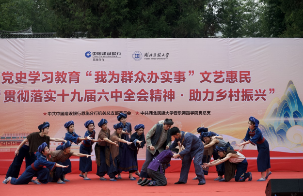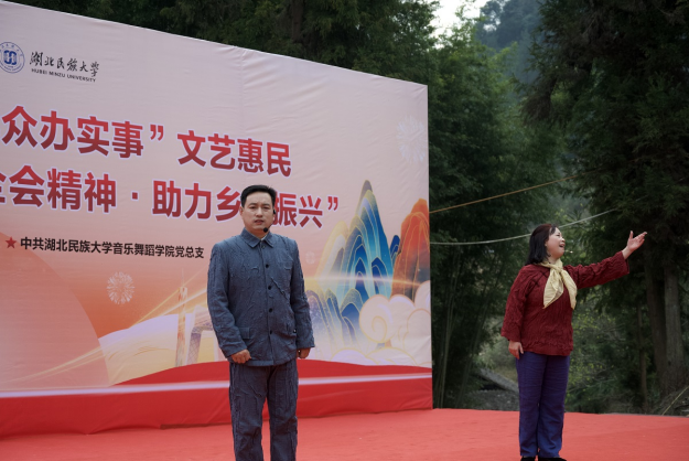 为传播好党的声音,展示好党的形象,让文艺服务扎根基层,开云电竞官方网站入口音乐舞蹈学院联合中国建设银行恩施分行,前往宣恩县高罗镇向家坪村,开展党史学习教育“我为群众办实事”文艺惠民暨“贯彻落实十九届六中全会精神·助力乡村振兴”活动,建行恩施分行员工代表及开云电竞官方网站入口音乐舞蹈学院师生80余人参加活动。