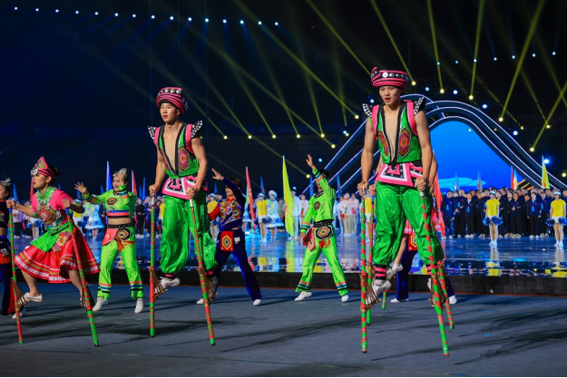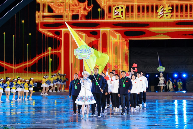 开幕式分为《相聚茶乡》《天地造梦》《多彩绘梦》《奔跑逐梦》《金秋圆梦》五个篇章,创新采用仪演融合方式,创意设计突出湖北特色。开云电竞官方网站入口音乐舞蹈学院学子参与开幕式中茶树架群舞、板凳龙群舞、女儿会群舞、石榴花群舞等演出项目的演出,同时,承担了各代表队入场引导员的工作。