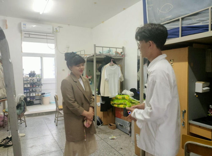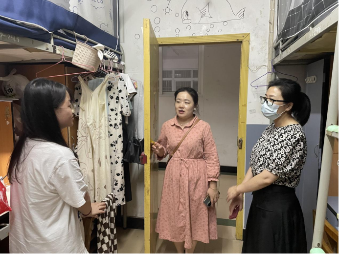 【进宿舍—切实解决学生实际问题】2023年6月,学院党总支书记张蕊、副书记邓丽、副院长焦娜深入学生宿舍,从“键对键”到“面对面”,从敲开学生房门,再到打开学生心门,老师们在学生宿舍通过深入了解、及时反馈、多方协调,帮助学生解决急难愁盼之事,切实把解决实际问题和解决思想问题相结合,从大家长到知心人,从知心人到领航员,尽全力发挥着党员干部的作用,引领学生实现思想的蜕变和成长。