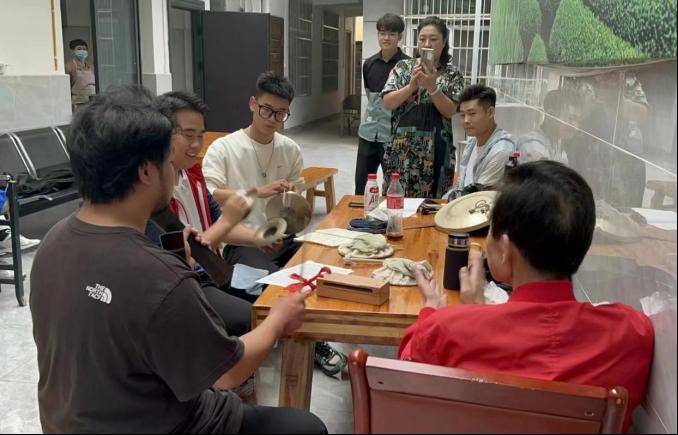 在咸丰县南剧艺术传承保护中心,团队成员一同观看了南剧剧目的排演和土家锣鼓的演奏,了解土家锣鼓的演奏方式和技艺,领略土家锣鼓的魅力。同时,还采访了南剧团演员杨理理老师并了解到南剧夏令营活动的筹备开展情况。