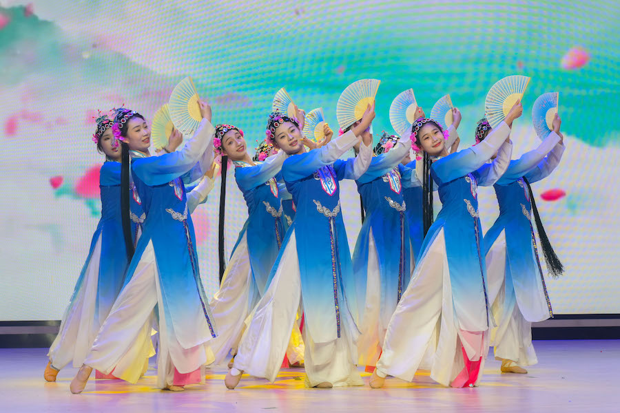 下篇,舞蹈《瑶山彩云飞》以瑶族少女绣锦为灵感,舞者身着彩云般绚丽的服饰,用灵动的舞姿展现千年瑶山的淳朴风情。男生小组唱《桃夭》《关雎》,将《诗经》中的经典篇目以优美的歌声呈现,在古今交织中演绎跨越千年的浪漫。国风歌曲《三国恋》带观众穿越至烽火连天的三国时代,感受金戈铁马与爱恨情仇的碰撞。朗诵节目《毕业留声》,毕业生用饱含深情的声音回顾在民大的青春岁月,有欢笑、有泪水、有成长,声音中满是对母校的不舍与对未来的期许。戏曲《黄鹤楼》作为中华文化瑰宝的代表,以独特的唱腔和表演,展现生旦净丑的百态人生,赢得现场阵阵喝彩。