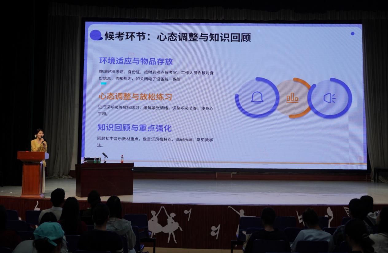 2025年5月15日下午14时,恩施市中小学音乐学科教研员、音乐教育领域资深专家文婧老师应邀走进我校音乐舞蹈学院演播厅,以“以乐育人·以美润心——音乐教师资格证面试实战解码”为主题,为音乐学、舞蹈学专业师生带来了一场兼具专业性与实践性的精彩讲座。