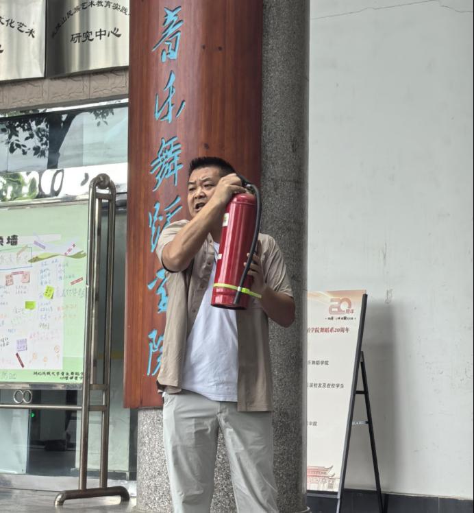 (文字:冉伟;图片:杨倩、唐自君;审核:胡自爱)5月27日,为增强师生消防安全意识,提升应急处置能力,音乐舞蹈学院联合学校保卫处消防科在音乐舞蹈学院教学楼组织了消防演练,音乐舞蹈学院百余名师生参加。