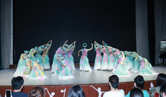 专业展示环节精彩纷呈,充分彰显学院艺术教育的丰硕成果。音乐学专业以合奏《南屏晚钟》拉开帷幕,合奏音韵悠扬,尽显专业底蕴;舞蹈学专业作品《卡普》以灵动舞姿和饱满情感,诠释了舞蹈艺术的独特魅力;航空服务艺术与管理专业则通过节目《云端礼遇》,将职业仪态、礼仪风范与茶艺表演融为一体,生动呈现专业特色,引来全场阵阵掌声。