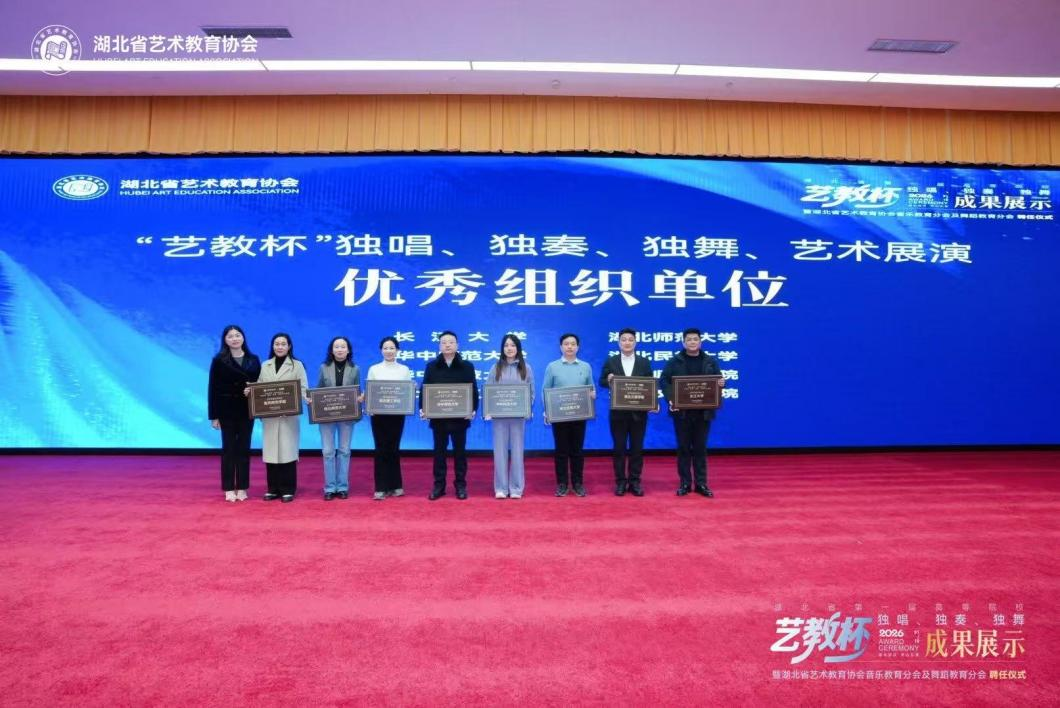 2026年1月10日,武汉洪山礼堂内星光熠熠,乐舞飞扬。湖北省首届高等院校“艺教杯”独唱、独奏、独舞艺术展演成果展示暨颁奖典礼在这里隆重举行,同时举行的还有湖北省艺术教育协会音乐教育分会、舞蹈教育分会聘任仪式,音乐舞蹈学院院长谷秋阳、教师毛伟臣应邀参加。