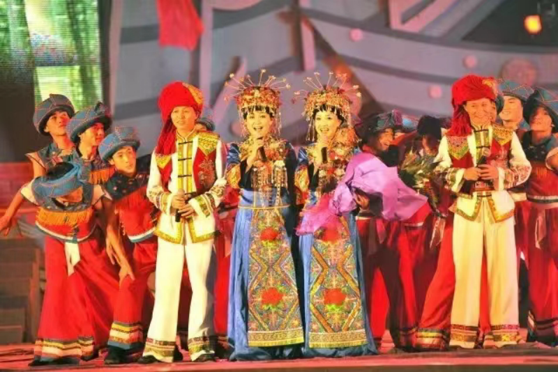 土苗兄妹在央视祈福(吴娟 左二)