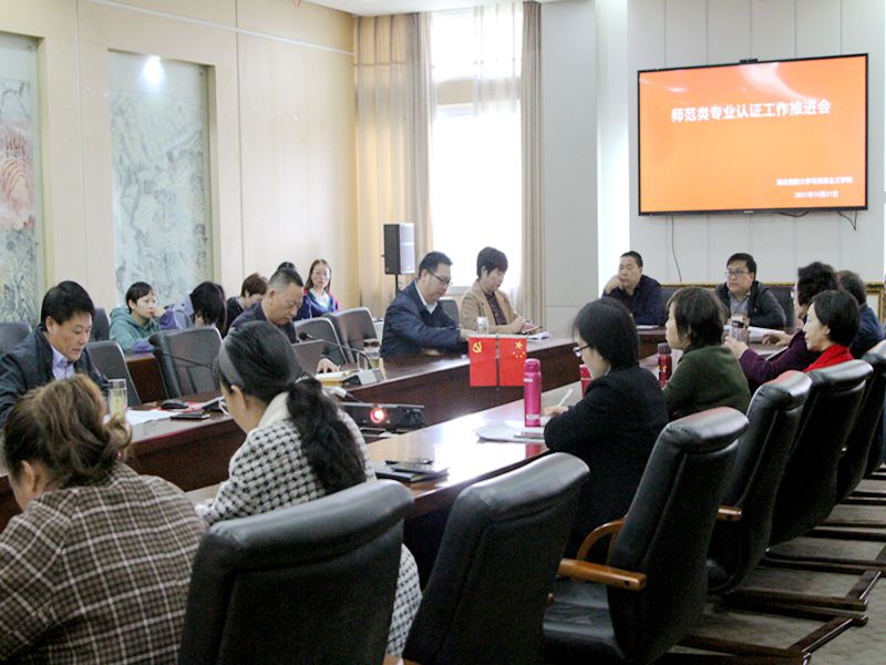 本网讯(通讯员 罗紫彤/文 董轩琳/图)为提高师范生培养质量,进一步完善教育体系,落实师范类专业认证实施方案,扎实、优质、高效地开展认证工作,10月21日下午,我院在德智楼三楼会议室开展师范专业认证工作推进会,大会由院长徐铜柱主持,我院全体教师参加此次会议。