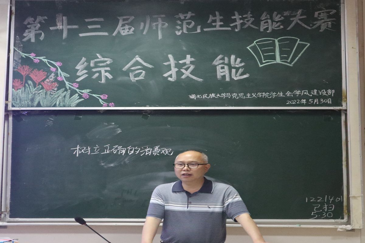 5月30日晚,综合技能比赛在德智楼9B208教室顺利举行。我院教师万俊、黄朝东担任评委。此次比赛包括教案设计、模拟授课和即席演讲三个部分。经过最终评定,肖杰、刘颖、胡小亿获得比赛前三名。