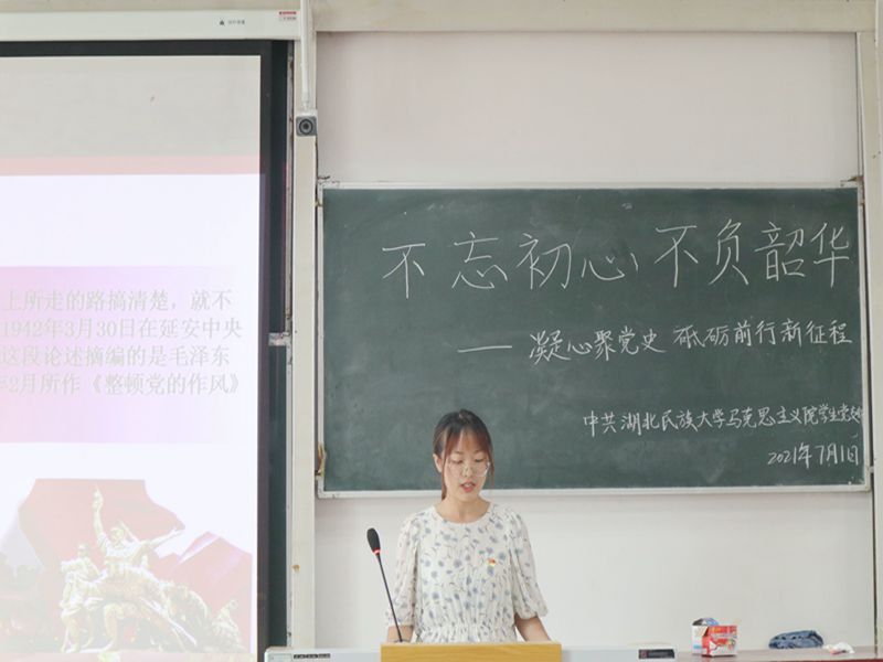 本网讯(通讯员 刘梦 王婵媛/文 钟静双/图)7月1日上午,我院学生党支部在德智楼9B210教室开展以“不忘初心 不负韶华——凝心聚力学党史,砥砺前行新征程”为主题的党日活动。我院学生党支部书记杨婷,党员兰洁、毛召等以及部分预备党员参加此次活动。