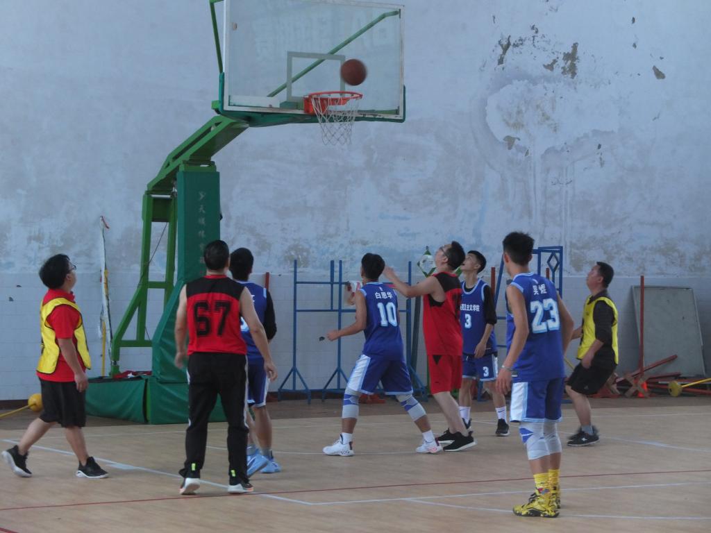 哨声响起,两支队伍迅速进入比赛状态,展开激烈的角逐。赛场上双方你追我赶,熟练地运球、传球,精准地投篮,每一个动作的配合都显示出队员的团结与合作。师生双方势均力敌,比赛高潮迭起,惊心动魄,无论输赢,双方都秉承着运动精神,永不放弃。