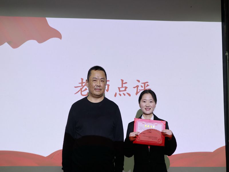 经过初赛的激烈角逐,共有十位选手入围本次决赛。此次比赛共分为自由演讲、即兴演讲、有感而发三个环节。自由演讲环节,三号选手吴倩讲述从党诞生到新中国成立的历史,列举众多为国奉献的英雄人物,表达自己对百年征程中他们坚守初心使命的深切敬佩。经过党史趣味答题的中间环节,比赛继续,选手们两两对决进行即兴演讲。其中二号选手易秋波就抽取到的话题——改革开放进行生动的演讲,她回顾改革开放的艰辛历程,重点讲述了小岗村敢想敢做、敢为人先的首创精神。有感而发环节,六位选手共同观看有关冬奥会的视频后,分别分享自己的感想。最终,二号选手易秋波荣获比赛一等奖。