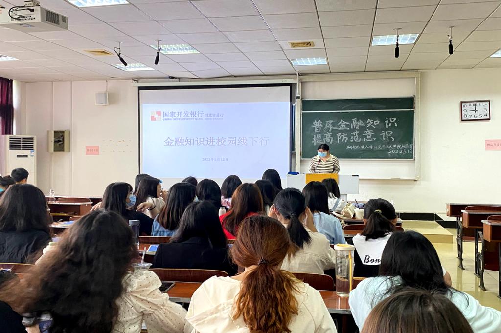 本网讯(见习通讯员 祝享菊/文 孙航/图)5月12日上午,我院于德智楼9B210教室开展金融知识进校园专题学习,我院学生科辅导员毛召应邀担任领学人,我院全体学生参与此次学习。