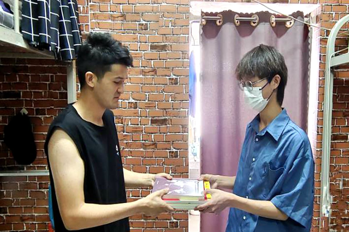 活动中,我院团总支成员依次走访2022届毕业生寝室并解说本次活动的内容,同时向毕业生赠送定制明信片及钥匙扣,表达对毕业生的祝福。随后,毕业生在书籍扉页上写下对学弟学妹的祝福和寄语并捐赠书籍。2022届毕业生田委玲捐赠三本书籍,表示希望所捐书籍能够用到实处,愿学弟学妹们珍惜时光,坚定选择,逐梦前行。