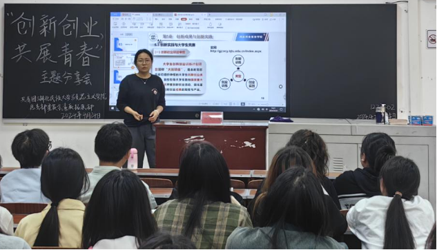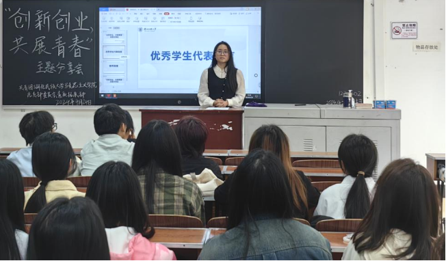 姜素凤从创新创业基本知识出发,立足“大学生创新创业训练计划项目”“中国国际大学生创新大赛”“挑战杯”等创新创业大赛的相关文件要求,为同学们讲解创新创业的理论现实意义以及相关赛事要求。她鼓励大家积极参与学校学院创新创业活动,在创新创业中增长智慧才干,锤炼意志品质。