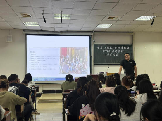 6月10日,我院在德智楼9B210教室举办以“青春行致远 实践谱新篇”为主题的2024年暑期社会实践动员大会,我院团总支书记刘轩男,大一、大二全体学生参加。