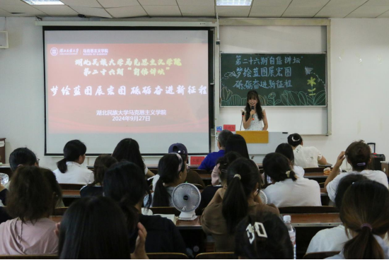 为进一步深入学习贯彻党的二十届三中全会精神,9月27日,我院在德智楼9B210教室举办以“梦绘蓝图展宏图 砥砺奋进新征程”为主题的第二十六期“自信讲坛”活动。本次活动特邀我院副教授宋祖红老师为嘉宾,我院研究生杨稀和本科生赵光荣担任主讲人。我院大一全体学生参与此次活动。
