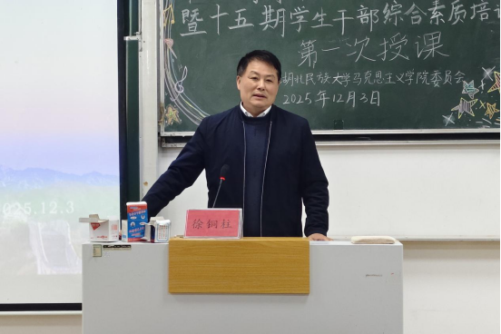 徐铜柱致辞。他围绕“真信、真学、真懂、真用”四个维度提出殷切期望。他强调,全体学员要坚定马克思主义信仰,锚定正确前进方向;深耕马克思主义原著与党的创新理论,重点研习党的二十届四中全会精神,筑牢思想根基;深刻把握理论蕴含的世界观与方法论,知其然更知其所以然;将理论学习成果转化为实践能力,在服务国家与人民中发挥先锋模范作用,争做有理想、敢担当、能吃苦、肯奋斗的新时代青年马克思主义者。