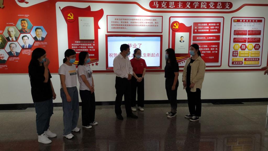 6月22日,校党委书记吴建清带领校办、学工处、校团委等单位负责人到我院看望思政专业毕业生。