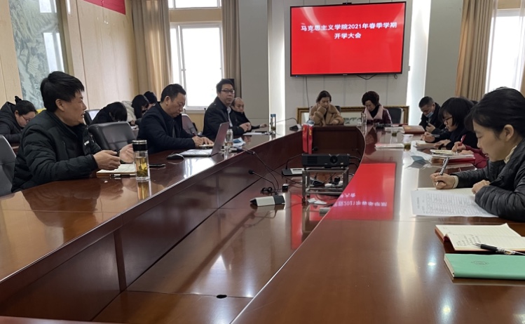 本网讯 2月28日,马克思主义学院在学院会议室召开2021年春季学期开学工作大会,传达学校开学工作会议精神以及招生就业工作会议安排,部署相关工作。院长徐铜柱主持会议,我院全体教职工参加。