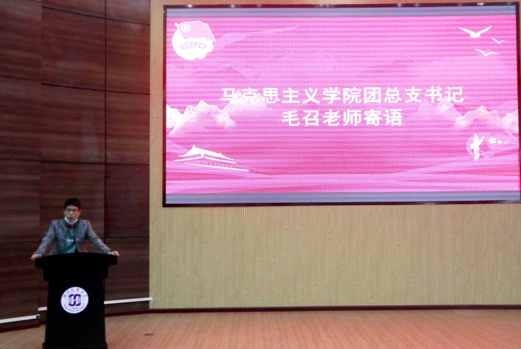 活动伊始,全体起立奏唱团歌和重温入团誓词。随后,上一期优秀学员代表张莎发言,她结合自身经历谈到青马工程在高校思想教育工作中的战略意义不容忽视,青马人应自觉强化马克思主义武装,发挥新时代青年学生的先锋模范作用。紧接着,本期学员代表祁丹悦同学进行发言,她指出作为学生干部和新青年要承担历史使命,做有理想信念的骨干,用实践激发潜力,起到表率作用,并就如何成为一名优秀的青年马克思主义者分享了自己的思考。