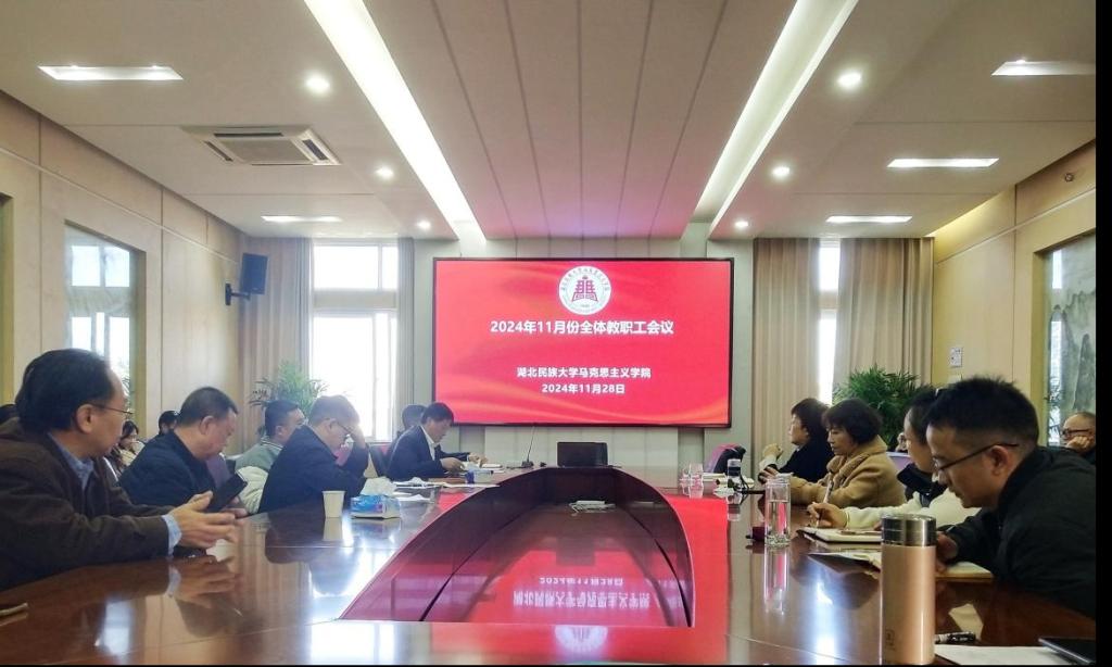 本网讯 11月28日下午,学院召开了11月份教职工会议,深入学习贯彻党的二十届三中全会精神,开展师德师风教育,并就学院未来的高质量发展进行了深入讨论和规划。会议由党总支书记向驰主持,全体教职员工参加。